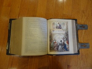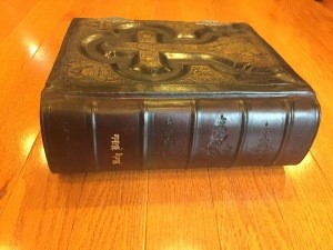 Having had the Dickinson Family Bible restored earlier this year (see earlier blog post here), I was eager to see what Leonard’s Book Restoration could do with the second family bible, which was in much worse condition (although it still had both metal closures, which surprised the restorer). I have been referring to the second bible as the McKenna Family Bible because they were both in the possession of my great-grandmother, Helen (McKenna) Dickinson. However, it’s entirely possible that the second bible came from the DuRoss family (Helen’s mother), or the Luke family (her mother-in-law). Unfortunately, there are no family records (births, marriages or deaths) recorded in the second bible like there are in the Dickinson bible, so I don’t really know. But what a great job the book restorer did!
